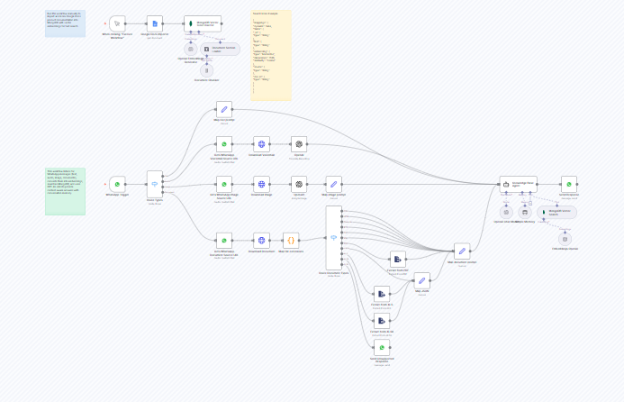 This template is designed for internal support teams, product specialists, and knowledge managers in technology companies who want to automate ingestion of product documentation and enable AI-driven, retrieval-augmented question answering via WhatsApp.