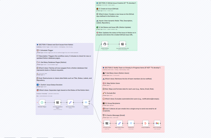 Automation flow from Notion to GitHub with email notifications